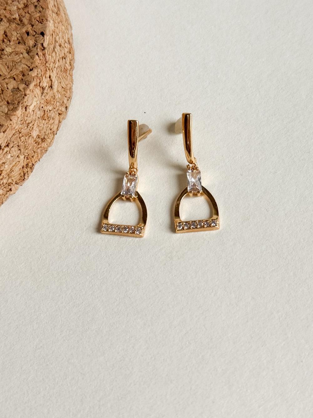 Delicado e marcante, o Brinco Estribo-zircônia retangular combina o charme do estribo com o brilho sofisticado da zircônia em corte carrê. Uma peça que ilumina o rosto e revela paixão pelo campo e pela elegância atemporal.