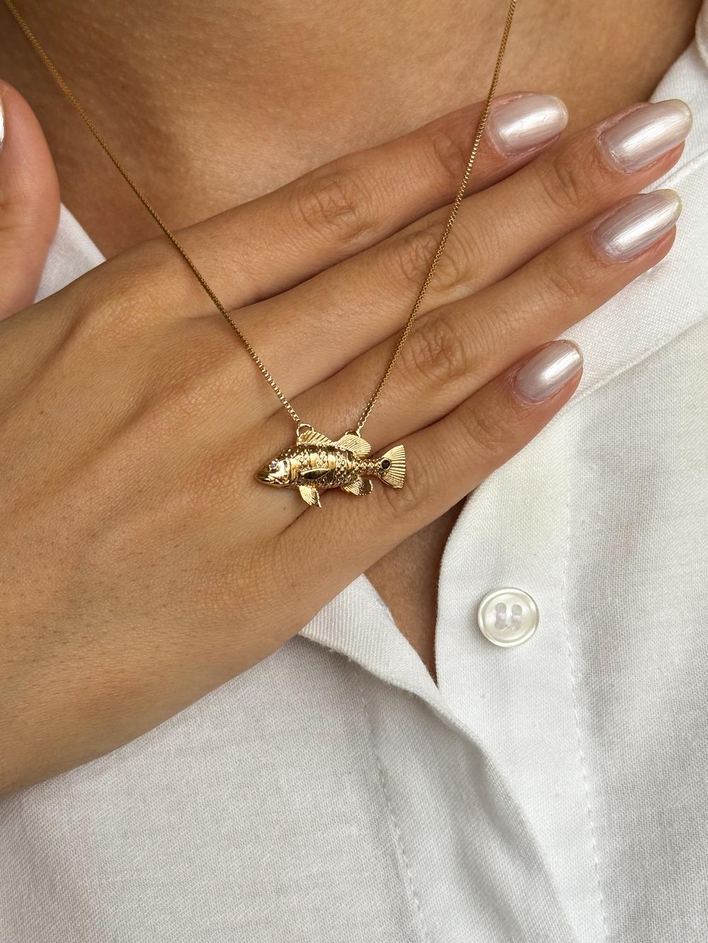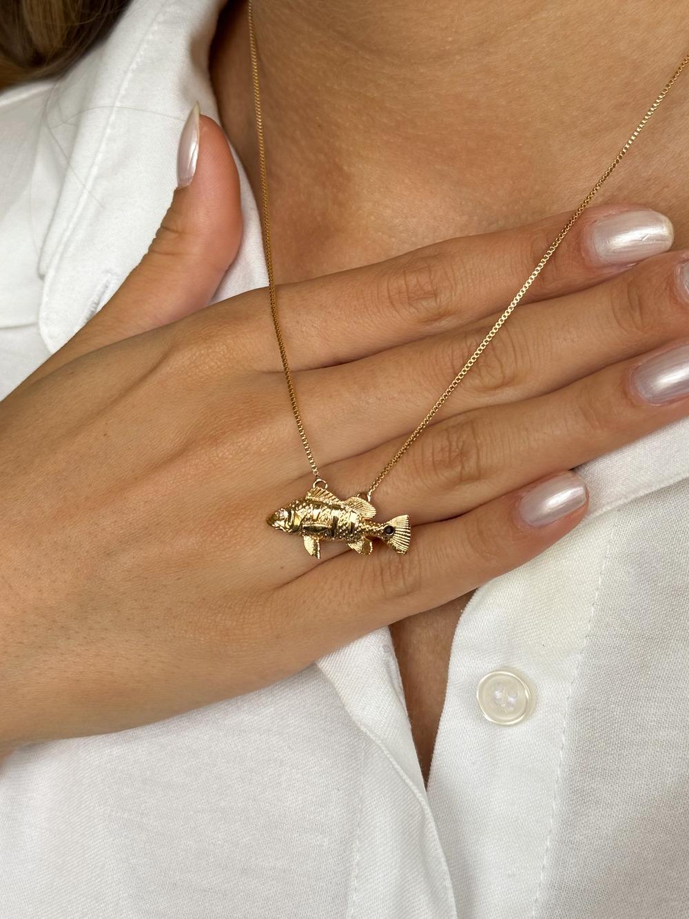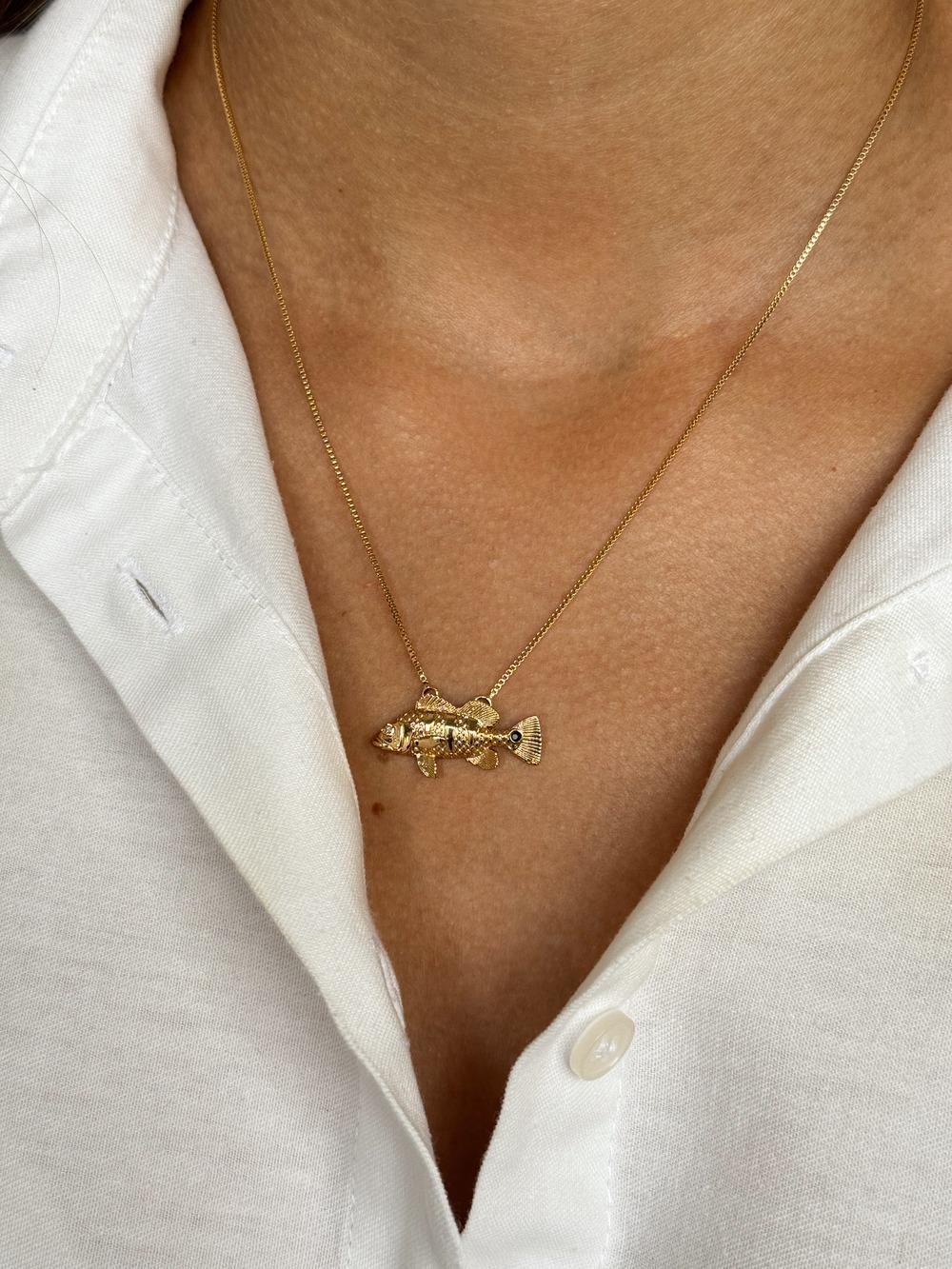 Inspirado na força e na beleza das águas brasileiras, o colar Tucunaré celebra a paixão pela pesca e pela vida no campo. Seu design detalhado traduz o movimento e a imponência do peixe, trazendo uma peça autêntica e cheia de personalidade — perfeita para quem carrega o espírito aventureiro no coração.