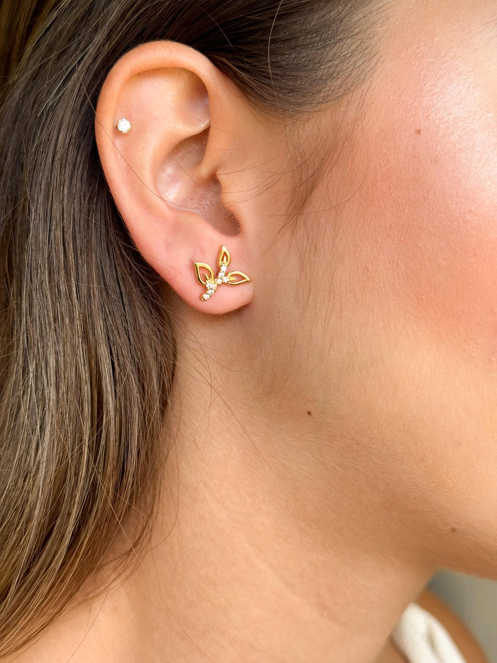 Delicadeza que floresce em cada detalhe. O brinco Broto Cravejado simboliza o início de novos ciclos, trazendo brilho e significado em uma joia leve, feminina e elegante.