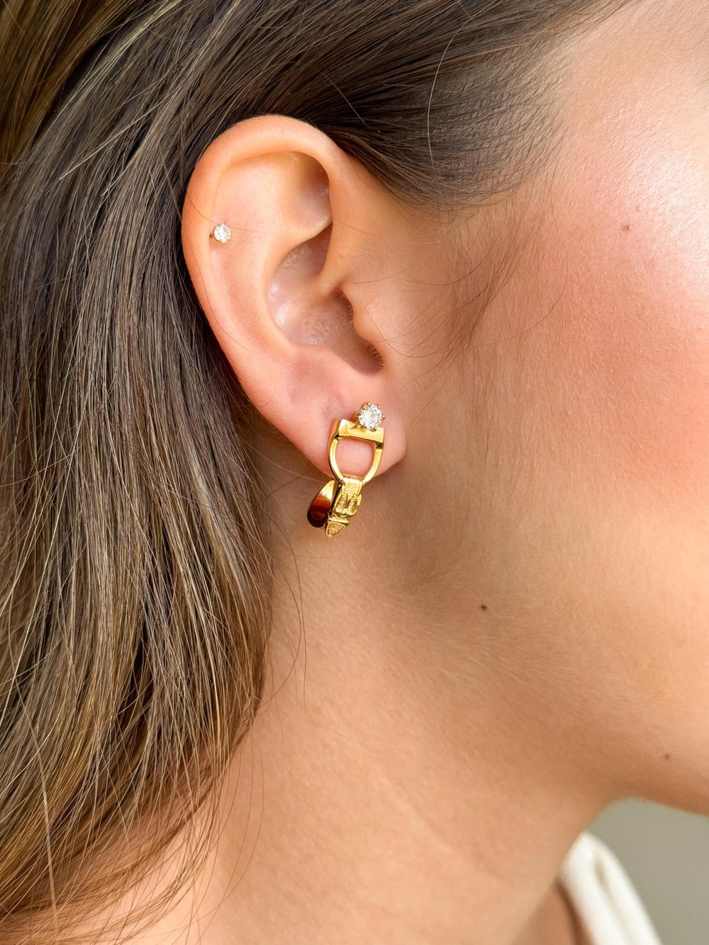 Elegância e identidade para o dia a dia no campo e na cidade. O brinco Estribo traz a simbologia do apoio e da confiança em uma peça delicada, versátil e cheia de significado.