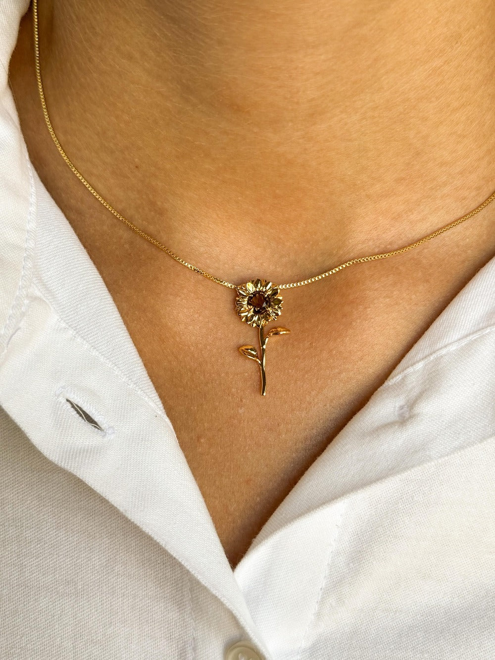 Inspirado na beleza do campo, o colar girassol traduz luz, energia e esperança. Uma peça delicada, que traz a natureza para perto de você com um toque romântico.