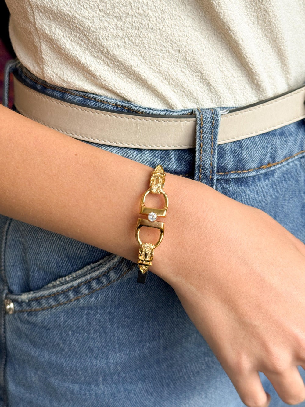 Uma peça que acompanha cada passo da sua jornada. A pulseira Estribo une tradição e sofisticação em um design atemporal, perfeita para composições cheias de identidade e significado.
